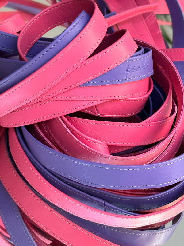 Kietaisuvyöt sekä laukut valmistetaan teollisuuden ylijäämänahasta, ja osassa tuotteista hyödynnetään myös oman tuotantomme ylijäämää. Tuotteet solmitaan leikkuun ylijäämästä syntyneillä nauhoilla, ja valmistamme ylijäämästä myös kauniita koruja . Nahkatakkimme valmistetaan kotimaisesta peurannahasta.