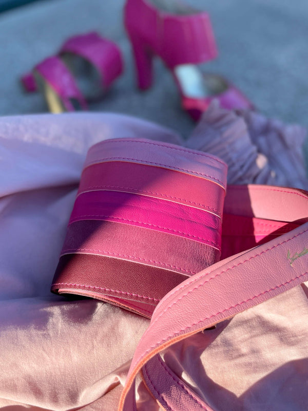 Valmistamme kiertotalouden arvojen mukaisia, katseita ja käyttöä kestäviä laukkuja, kietaisuvöitä sekä nahkatakkeja.